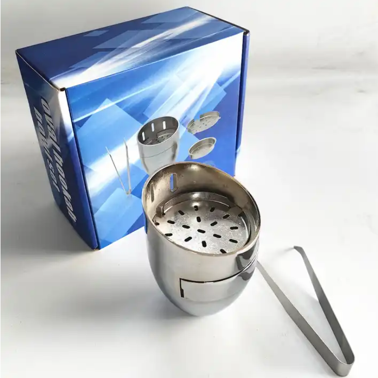 - Complete set: Glass base, Down stem, Base Stem, Hose silicone, Handle, Ceramic Bowl, Tray and tong for coal.